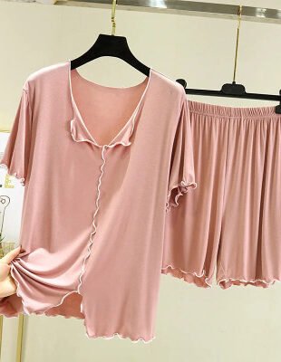 طقم بيجامات نسائية فضفاضة بأكمام قصيرة ، طراز رقيق ، قطعتين