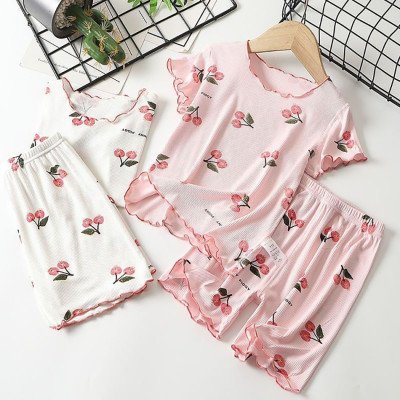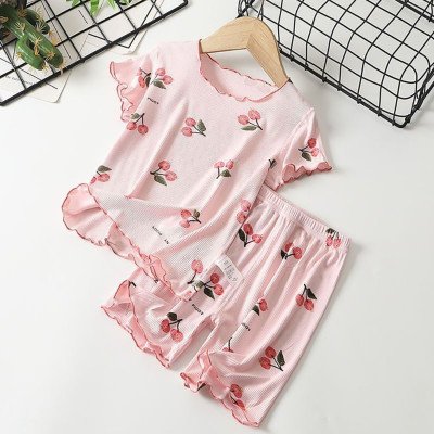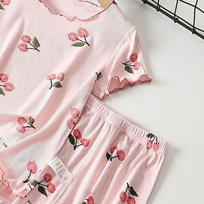 الاسم: طقم بيجامة صيفي للفتيات طباعة زهر الكرز شورت مطاطي في 4 اتجاهات ومزيج مشروط قابل للتنفس لوقت النوم ووقت اللعب لمدة 1-8 سنوات