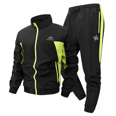 مجموعة رياضية برسومات جبلية ملونة للرجال في الهواء الطلق معطف غير رسمي بسحاب وسترة ملابس خارجية وسراويل مع جيوب بسحاب
