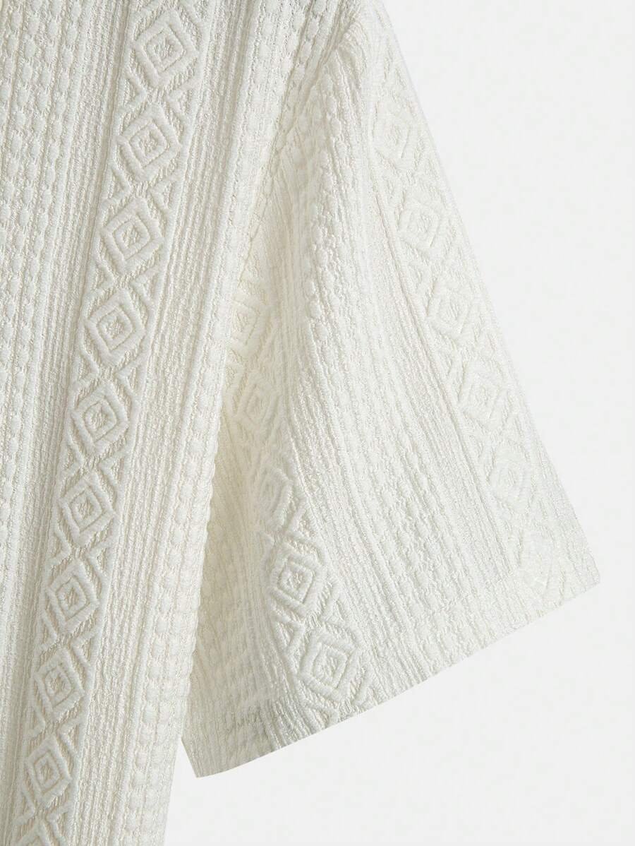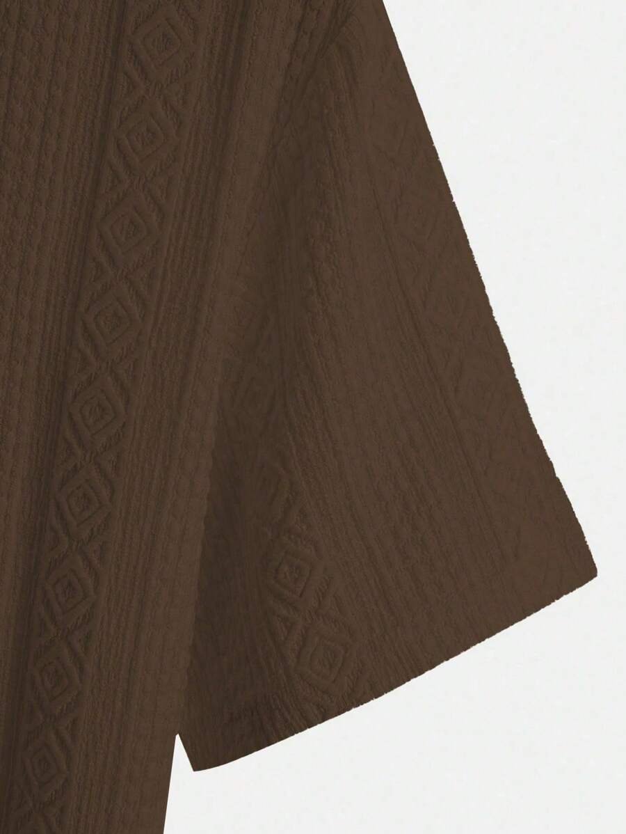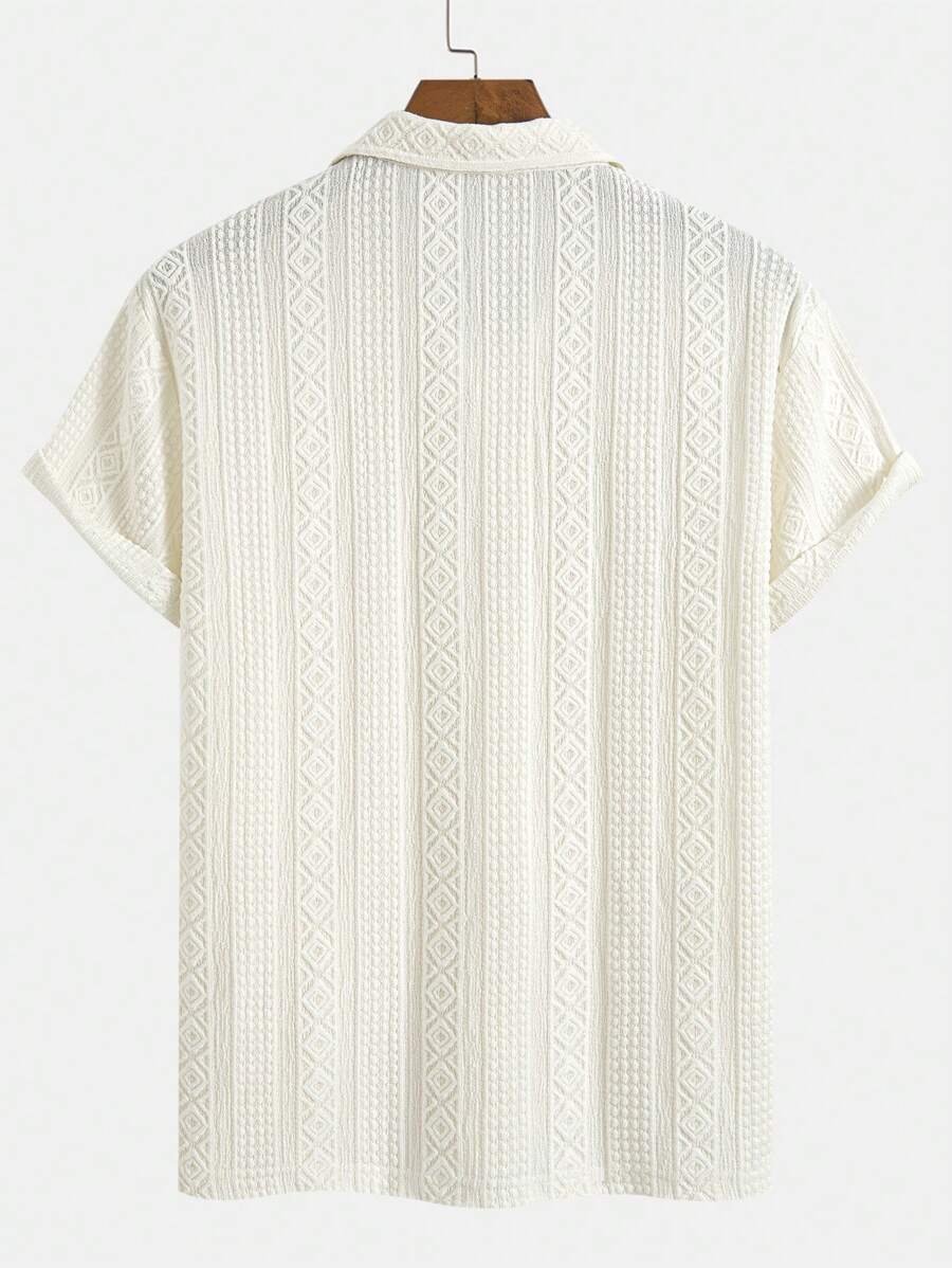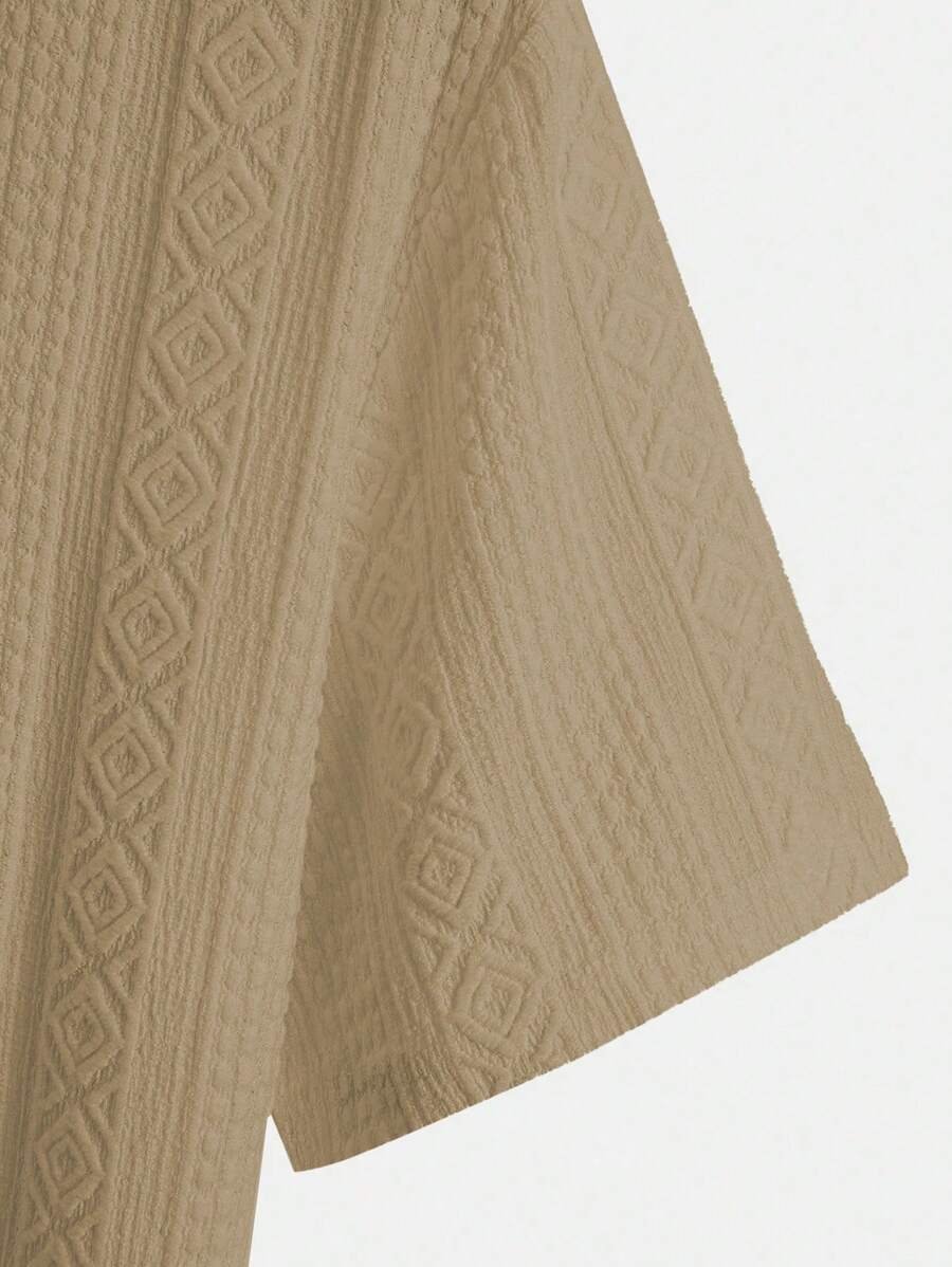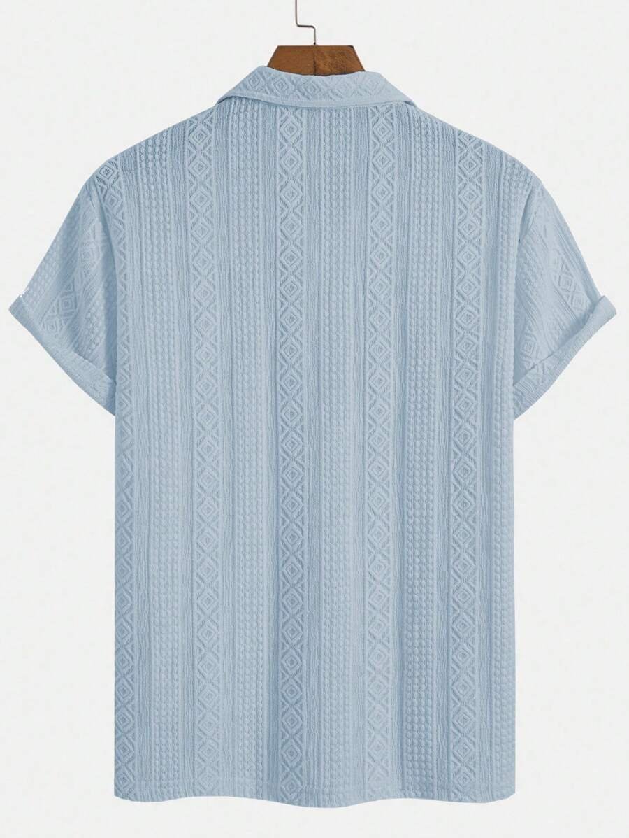 ملابس علوية تيشرت كاجوال للرجال، تصميم ياقة نصف زر كلاسيكي باللون الصلب ونسيج هندسي، ملائمة للارتداء اليومي في الصيف، أكمام قصيرة