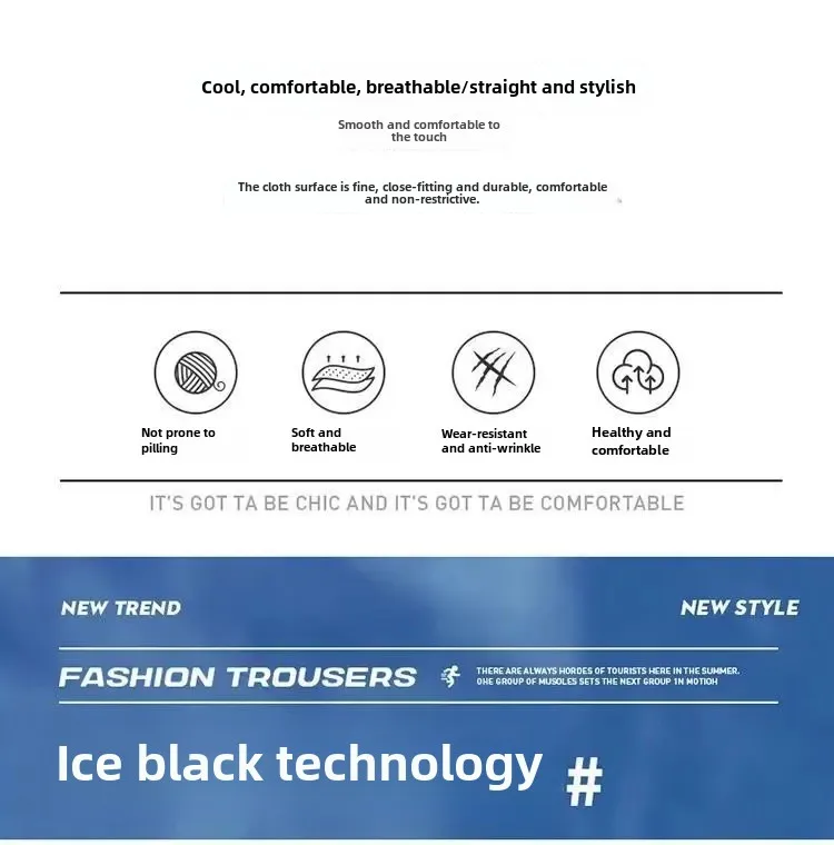 • مادة الحرير الجليدي الممتازة:مصنوع من الحرير الجليدي عالي الجودة، هذا البنطلون يوفر ارتداءً رائعًا ومريحًا، مثاليًا لموسم الصيف.