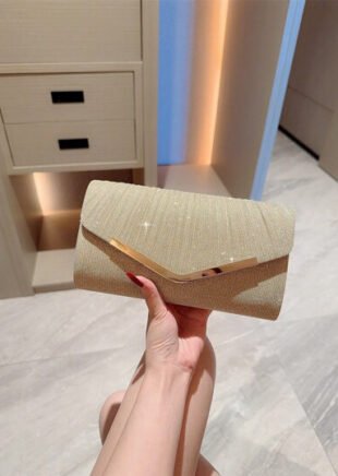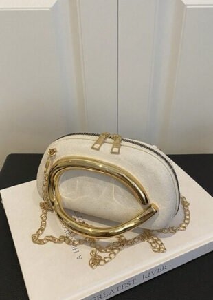 حقيبة مسائية صغيرة فاخرة للنساء، مزينة بسلاسل معدنية عصرية لامعة، محمولة باللون الذهبي، مناسبة للحفلات الراقية وحفلات الزفاف، حقيبة كتف مميزة