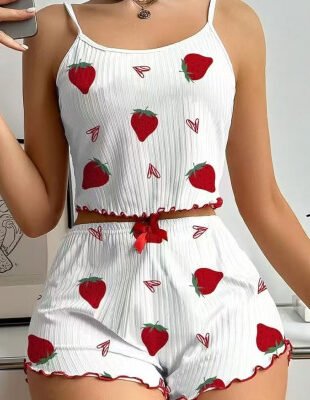 طقم بيجامات نسائية فضفاضة بأكمام قصيرة ، طراز رقيق ، قطعتين