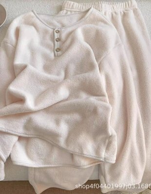 ملابس نوم نسائية سميكة من الصوف لون نقي من الصوف المرجاني