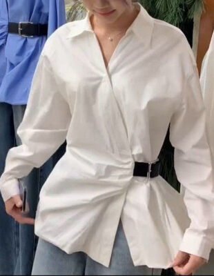 قميص علوي أنيق حزام الخصر رقيقة طويل الأكمام