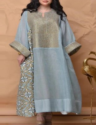 vعباية طويلة باكمام كبيره منقوشة ورقبه علي شكل حرف
