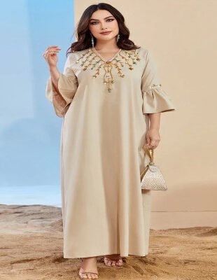 Vعباية سهرة تقليدية متواضعة مقاس كبير ورقبة على شكل حرف