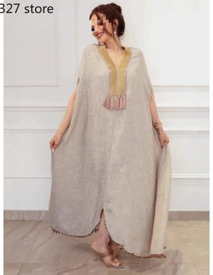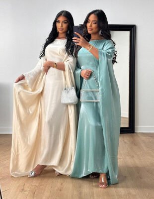 (عباية حريري ماكسي بأكمام الخفافيش (قفطان رداء طويل