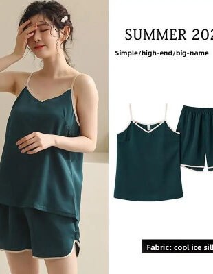 طقم بيجامة نسائي قطعتين من الحرير الجليد بلا أكمام